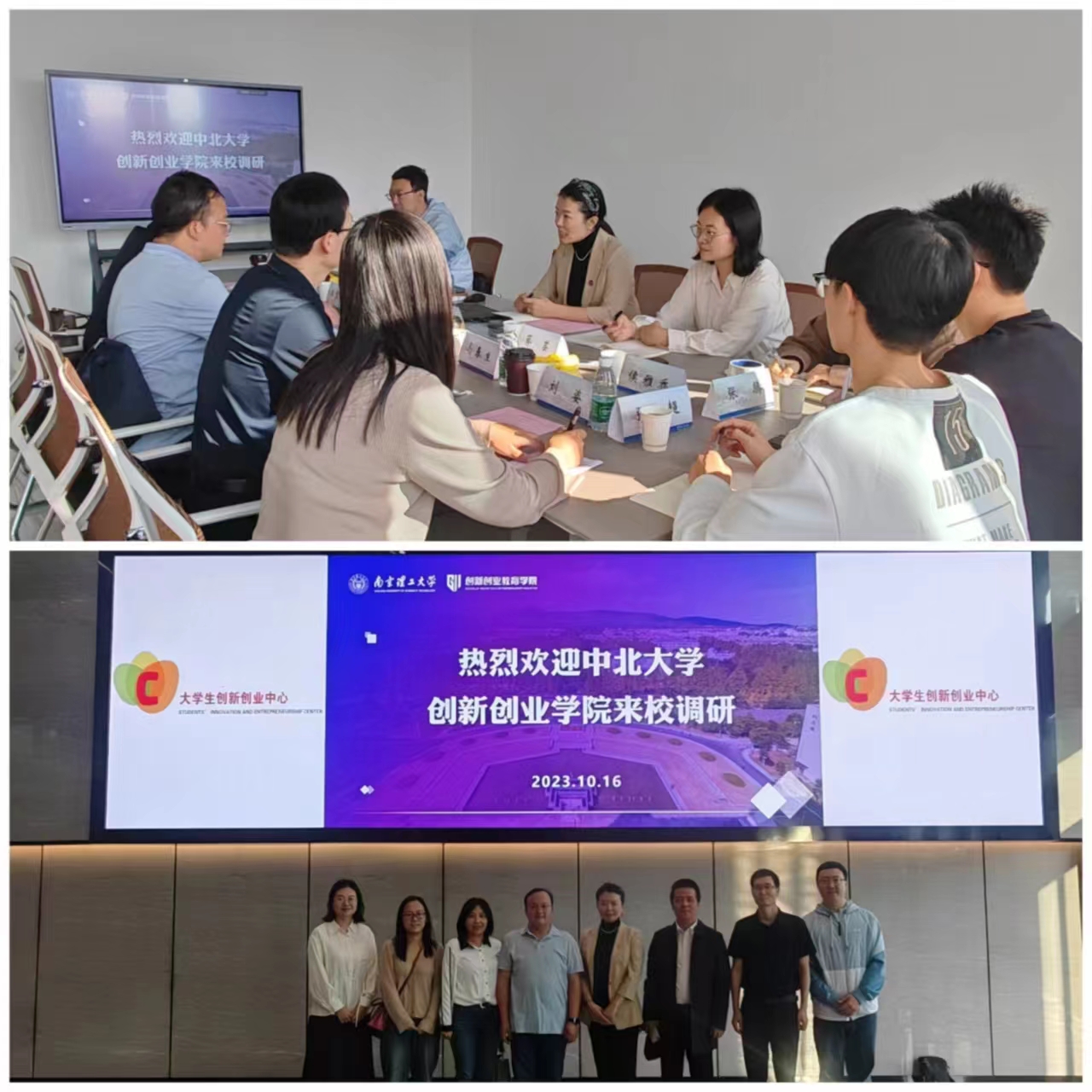 教师的到来表示热烈欢迎,共同参观了南京理工大学大学生双创活动中心,在随后的座谈交流中,赵茜副院长对南京理工大学在“六位一体”双创人才培养体系、“互联网+”参赛经验等进行了详细介绍,双方在创新创业实践课程建设、双创导师团队建设等工作进入深入探讨。