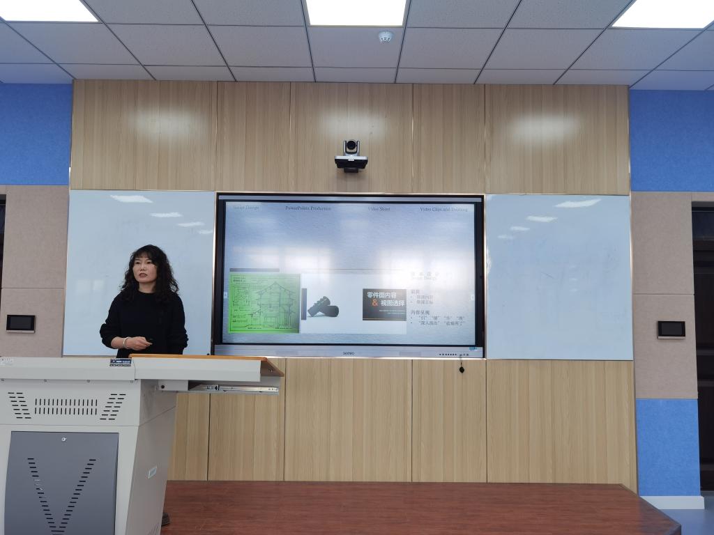 杜玲林老师结合她在第八届全国高等学校教师图学与机械课程示范教学与创新教学法观摩竞赛,并取得全国一等奖的参赛经历,作了题为“基于《工程制图》微课设计及制作技术分享”的主题报告。她表示微课因其短小精悍、可视性强,为学生增添了一种新的学习方式,可以将枯燥抽象的知识以形象生动的视频展现出来,便于学生更好地理解和记忆。她以《工程制图》为例,介绍了微课的设计与制作过程,为有兴趣制作微课的教师提供了一定的参考。