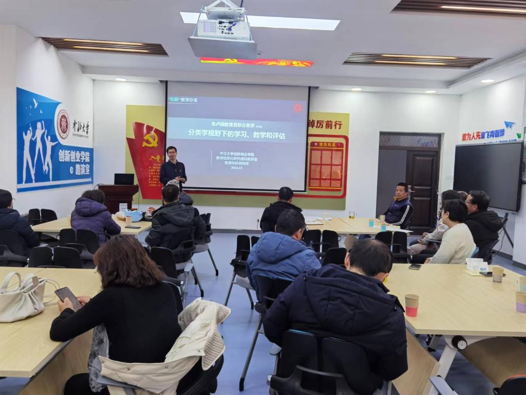 马春生老师是本期读书沙龙的领读人,他从认知过程维度、知识维度和分类学表三方面分享了布卢姆《教育分类学》的教育理念。他表示布卢姆教育分类学是教育界著名的分类法之一,他为教育工作者提供一种分类框架,可以帮助教师更加具体的了解学生的能力要求,为教师提供更好地课程设计方案和教学方法,同时也有利于测量学生学习成果。