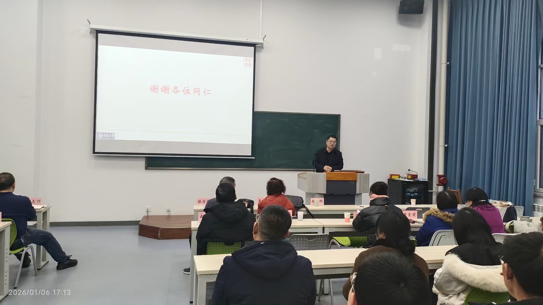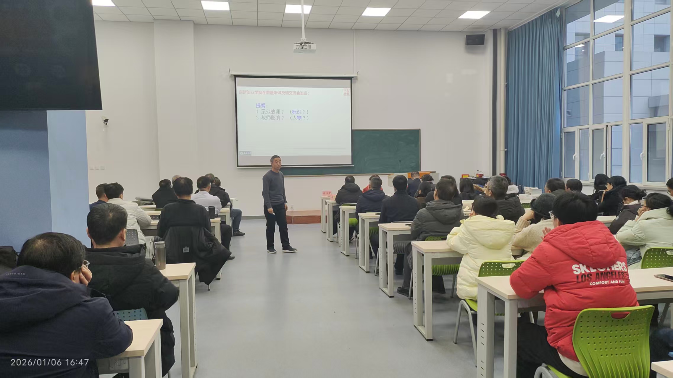 会议最后,本科教学督导委员会主任委员张吉堂老师为全体参会人员分享了“观摩教师与理想课堂”的报告。